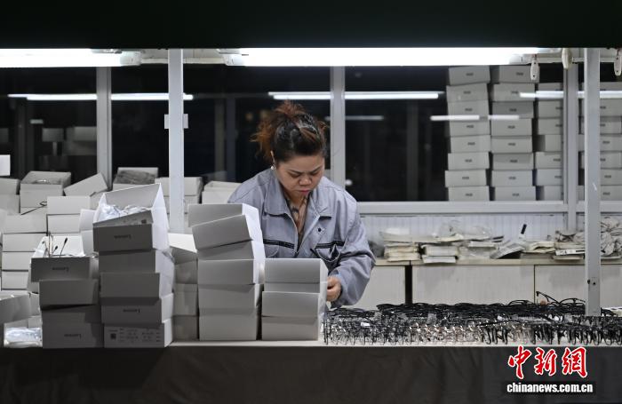 图为11月25日,工人散中包拆停线的眼镜产物,筹办用于卑鄙发卖。中新社记者 王刚刚 摄